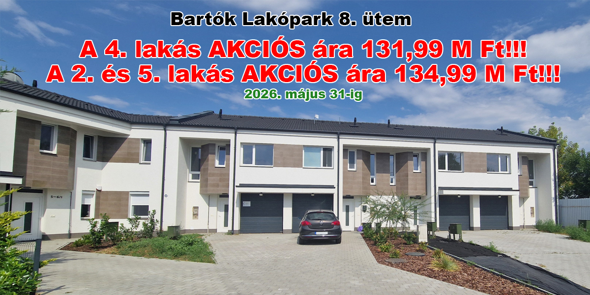 Közel 100 lakóegységgel valósult meg a Bartók Lakópark és a Bartók Lakópark eXtra, amely lakások modernebb külső megjelenésükkel és a kertekhez kapcsolódó, zöld rekreációs zónával várják új tulajdonosaikat!